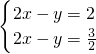 分析:2y=4x-4化简得y=2x-2,所以一次函数y=2x-2与2y=4x-4,这两个图象的关系是重合;方程组