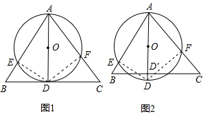 如图1,AD是圆O的直径,BC切圆O于点D,AB、AC与圆O相交于点E、F.