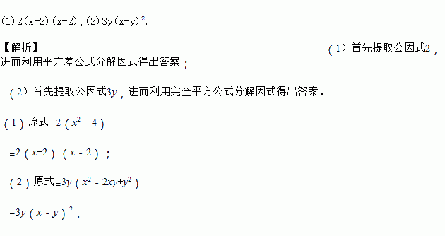 (1)2x2-8;(2)3x2y-6xy2+3y3