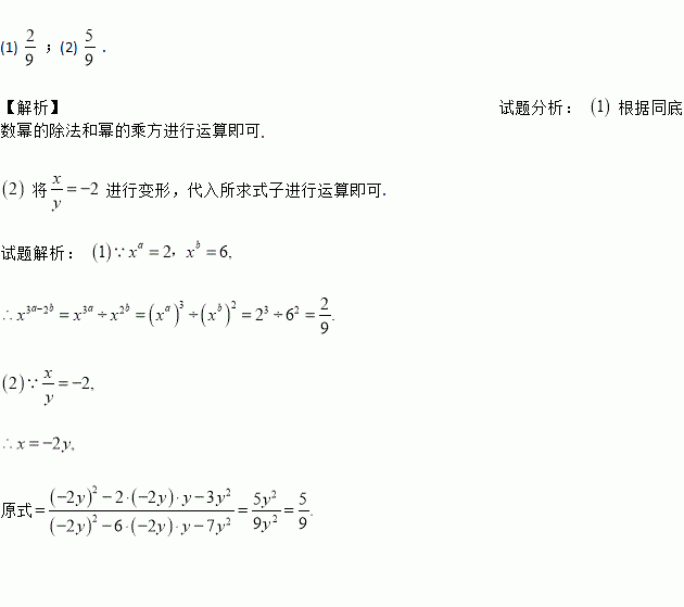(1)已知xa=2,xb=6,x≠0,求x3a-2b的值;