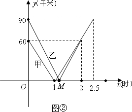 Èçͼ¢Ù£¬Ò»Ìõ±ÊÖ±µÄ¹«Â·ÉÏÓÐA¡¢B¡¢CÈýµØ£¬B¡¢CÁ½µØÏà¾à 150ǧÃ×£¬¼×¡¢ÒÒÁ½Á¾Æû³µ·Ö±ð´ÓB¡¢CÁ½µØÍ¬Ê±³ö·¢£¬Ñع«Â·ÔÈËÙÏàÏò¶øÐУ¬·Ö±ðÊ»ÍùC¡¢BÁ½µØ£®¼×¡¢ÒÒÁ½³µµ½A µØµÄ¾àÀëy1¡¢y2£¨Ç§Ã×£©ÓëÐÐʻʱ¼äx£¨Ê±£©µÄ¹ØÏµÈçͼ¢ÚËùʾ£®