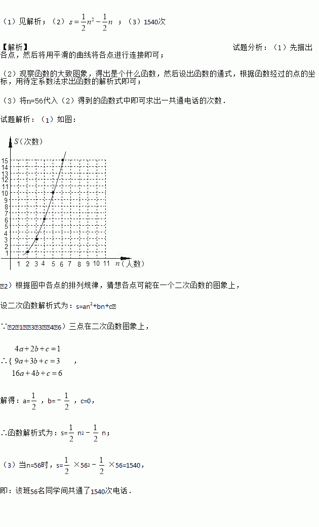 (3)根据(2)中得出的函数关系式,求该班56名同学间共通了多少次电话.