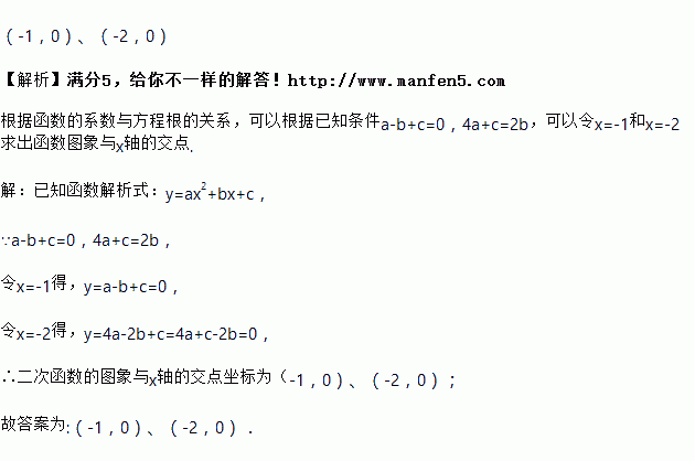 已知a,b,c满足 a﹣b+c=0,4a+c=2b,则关于x的二次函数y=ax2+bx+c(a≠0)的图象与x轴的交点坐标为_____.