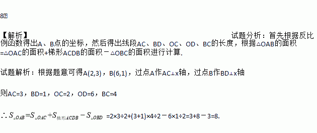 如图,反比例函数在第一象限的图象上有两点A,B,它们的横坐标分别是2,6,则△AOB的面积是________ .