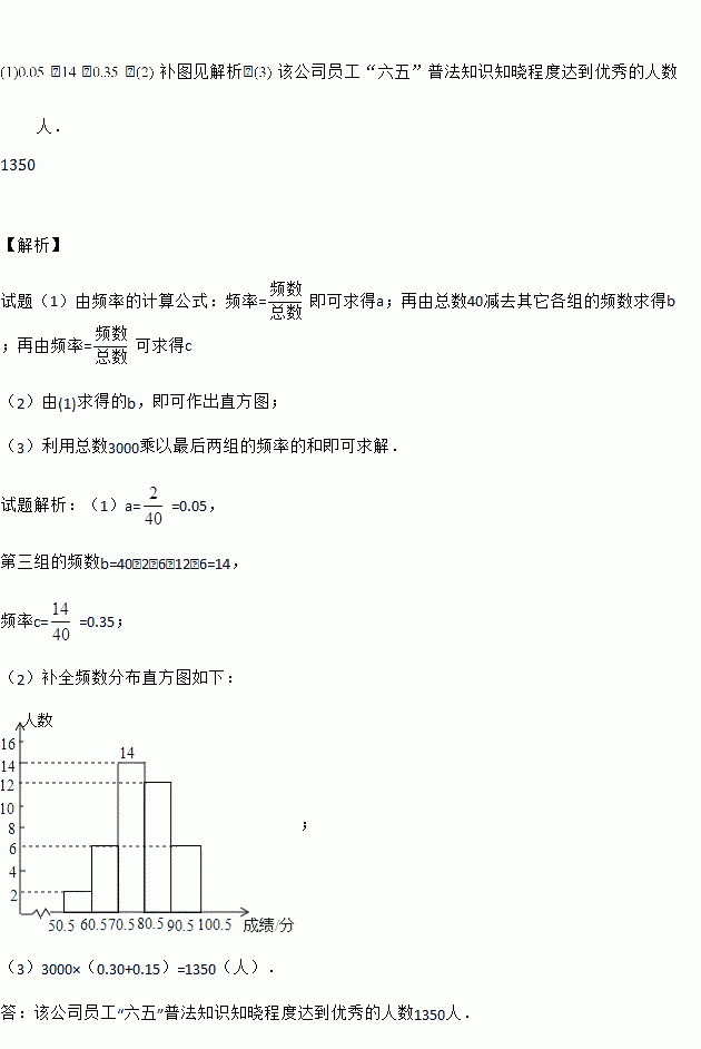某公司为了解员工对“六五”普法知识的知晓情况,从本公司随机选取40名员工进行普法知识考查,对考查成绩进行统计成绩均为整数,满分100分![]()