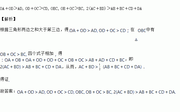 ∴OA+OB+OA+OD+OD+OC+OB+OC>AB+AD+CD+BC,