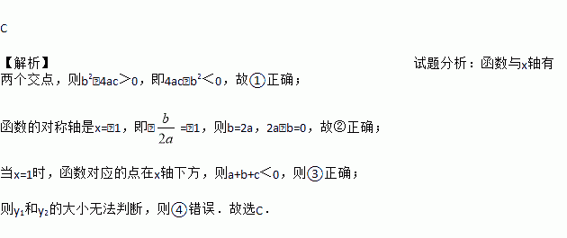 抛物线y=ax2+bx+c(a≠0)的对称轴为直线x=-1,与x轴的一个交点A在点(-3,0)和(-2,0)之间,其部分图象如图所示,则下列结论:①4ac-b2<0;②2a-b=0;③a+b+c<0;④点M(x1,y1),N(x2,y2)在抛物线上,若x1<x2,则y1≤y2.其中正确结论的个数是( )
