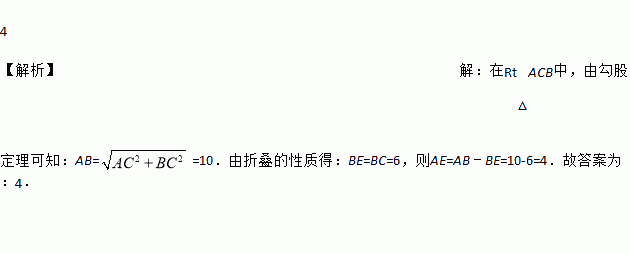 如图,在直角三角形ABC中,∠C=90°,BC=6,AC=8,点D是AC边上一点,将△BCD沿BD折叠,使点C落在AB边的E点,那么AE的长度是__________.