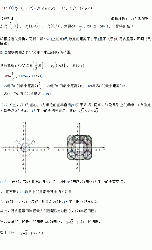 中的点P和图形G,给出如下的定义:若在图形G上存在一点Q ,使得P、Q之间的距离等于1,则称P为图形G的关联点.