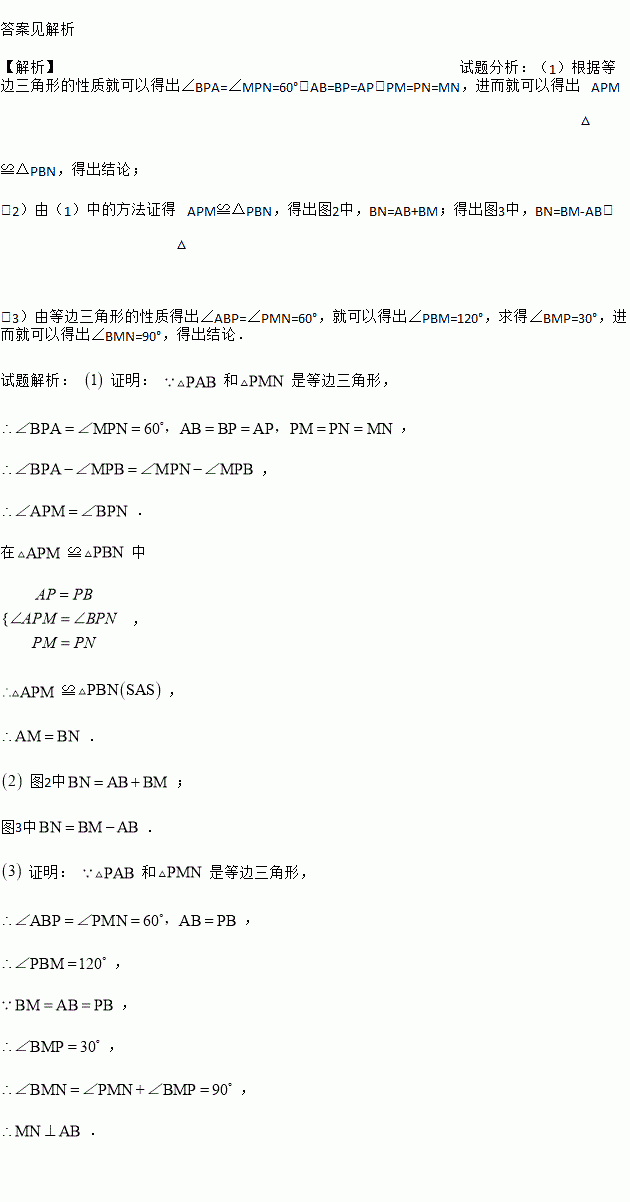 如图1,点M为直线AB上一动点, 都是等边三角形,连接BN