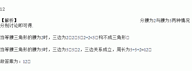 等腰三角形两边长分别为2和5,则这个等腰三角形的周长为_______.