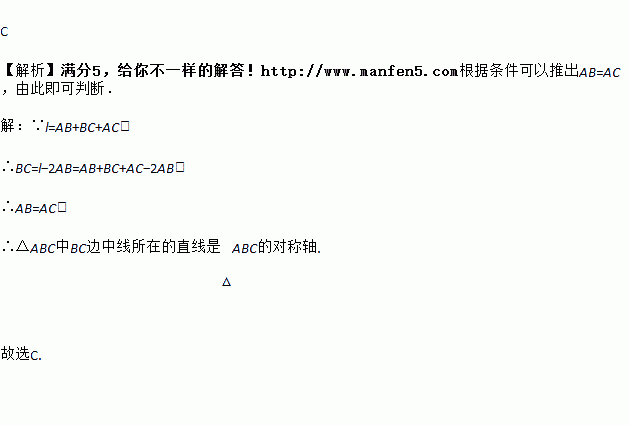 已知△ABC的周长是l,BC=l-2AB,则下列直线一定为△ABC的对称轴的是( )