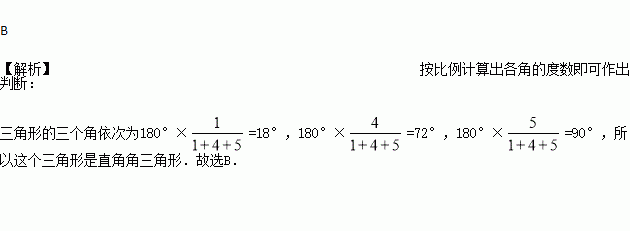 一个三角形三个内角的度数之比为1:4:5,这个三角形一定是( )