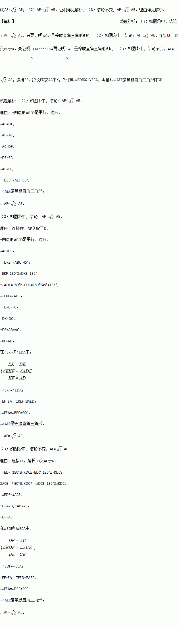 Èçͼ¢Ù£¬ÔÚ¡÷ABCÖУ¬¡ÏBAC=90¡ã£¬AB=AC£¬µãEÔÚACÉÏ£¨ÇÒ²»ÓëµãA£¬CÖØºÏ£©£¬ÔÚ¡÷ABCµÄÍⲿ×÷¡÷CED£¬Ê¹¡ÏCED=90¡ã£¬DE=CE£¬Á¬½ÓAD£¬·Ö±ðÒÔAB£¬ADΪÁÚ±ß×÷ƽÐÐËıßÐÎABFD£¬Á¬½ÓAF£®