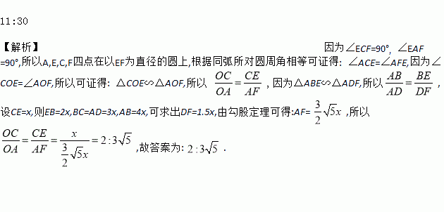 如图,点E为矩形ABCD边BC上一点,点F在边CD的延长线上,EF与AC交于点O,若CE:EB=1:2,BC:AB=3:4,AE⊥AF,则CO:OA=_____.