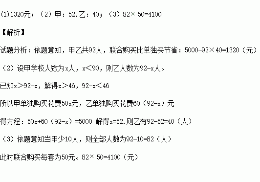 (1)Èç¹û¼×¡¢ÒÒÁ½Ð£ÁªºÏÆðÀ´¹ºÂò·þ×°£¬ÄÇô±È¸÷×Ô¹ºÂò·þ×°¹²¿ÉÒÔ½ÚÊ¡¶àÉÙÇ®£¿