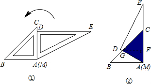 将一副三角板按如图1位置摆放,使得两块三角板的直角边AC和MD重合.已知AB=AC=8cm,将△MED绕点A(M)逆时针旋转60°后(图2),两个三角形重叠(阴影)部分的面积约是________cm2(结果精确到0.1,