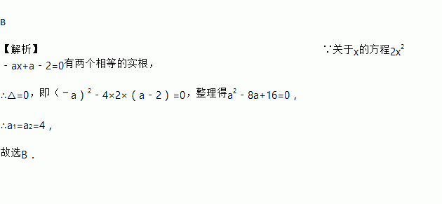 若关于x的方程2x2﹣ax+a﹣2=0有两个相等的实根,则a的值是( )
