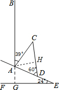 分析 (1)如果延长BA交EF于点G,那么BG⊥EF,∠CAE=180°-∠BAC-∠EAG,∠BAC的度数以及确定,只要求出∠GAE即可.直角三角形GAE中∠E的度数已知,那么∠EAG的度数就能求出来了,∠CAE便可求出;