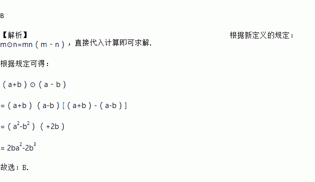 现定义一种运算“⊙”,对任意有理数m、n,规定:m⊙n=mn(m﹣n),如1⊙2=1×2(1﹣2)=﹣2,则(a+b)⊙(a﹣b)的值是( )