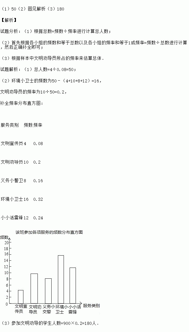 (3)若八年级共有900名学生报名参加了这次公益活动,试估计参加文明劝导的学生人数.