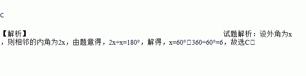 如果n边形每一个内角等于与它相邻外角的2倍,则n的值是( )