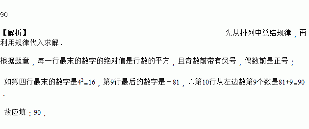 观察下面一列数:-1,2,-3,4,-5,6,-7,…,将这列数排成图2的形式,按照上述规律排下去,那么第10行从左边数第9个数是________.
