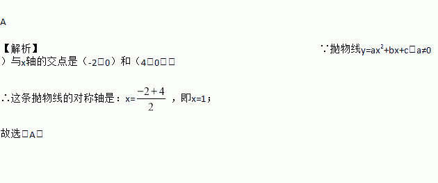 抛物线y=ax2+bx+c(a≠0)与x轴的交点是(-2,0)和(4,0),这条抛物线的对称轴是( )
