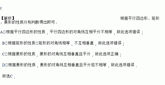 C. 菱形的对角线互相垂直且平分 D. 菱形的对角线相等