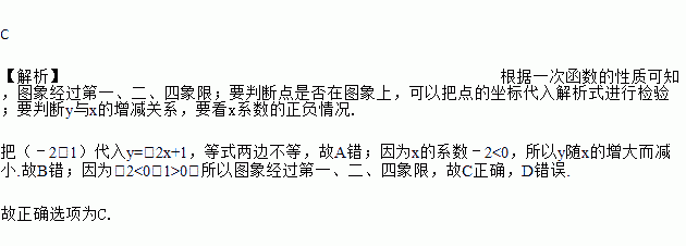 关于函数y=﹣2x+1,下列结论正确的是( )