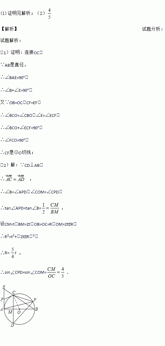 (1)求证:CF是⊙O的切线;