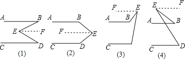 分析 (1)过点E作EF∥AB,于是得到AB∥EF∥CD,根据平行线的性质即可得到结论;