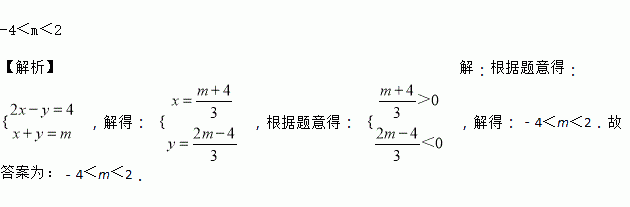 若点P(x,y)在平面直角坐标系xOy中第四象限内的一点,且满足2x﹣y=4,x+y=m,则m的取值范围是________