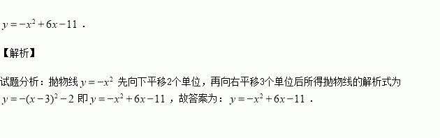 将抛物线先向下平移2个单位,再向右平移3个单位后所得抛物线的解析式为 .