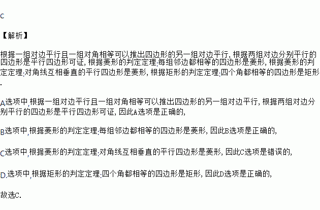 A. 一组对边平行且一组对角相等的四边形是平行四边形