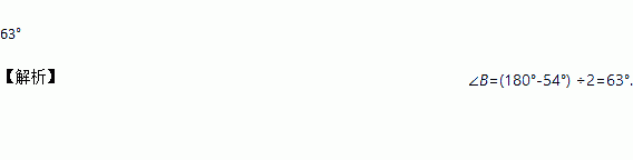 在△ABC中,AB=AC,∠A=54°,则∠B=_________度.
