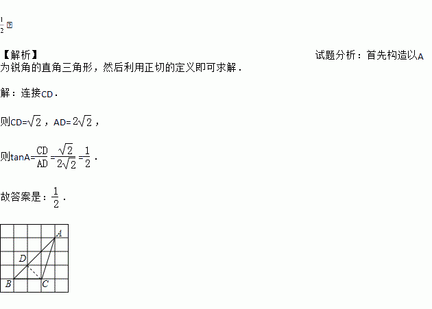 如图,△ABC的顶点是正方形网格的格点,则tanA的值为__.