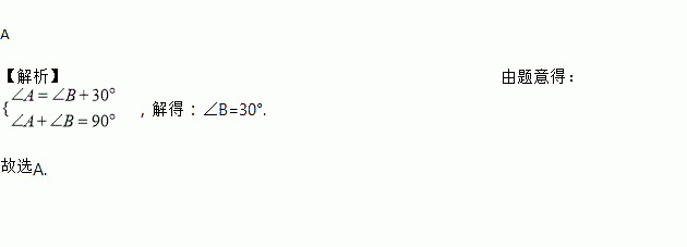已知∠A、∠B互余,∠A比∠B大30°.则∠B的度数为( )
