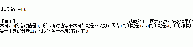 绝对值等于本身的数是_______________,倒数等于本身的数是_____________ ,相反数等于本身的数是___________ .