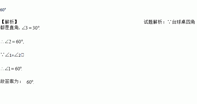 数学在我们的生活中无处不在,就连小小的台球桌上都有数学问题.如图,∠1=∠2,若∠3=30°,为了使白球反弹后能将黑球直接撞入袋中,那么击打白球时,必须保证∠1=______