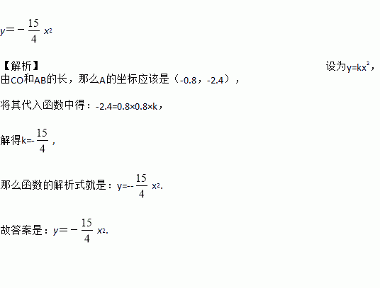 如图,某涵洞的截面是抛物线型,现测得水面宽AB=1.6m,涵洞顶点O到水面的距离CO=2.4m,在图中直角坐标系内涵洞截面所在抛物线的表达式是______________.