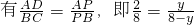 设AP=y,则BP=8-y,△ADP与△BCP相似,有两种情况: