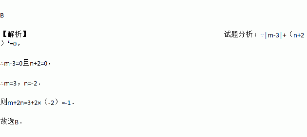 若|m-3|+(n+2) 2=0,则m+2n的值为( ).