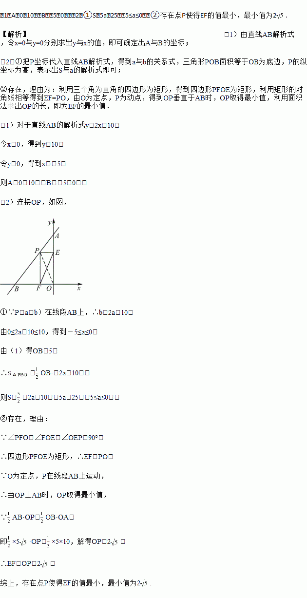 (2)若点P(a,b)为线段AB上的一个动点,作PE⊥y轴于点E,PF⊥x轴于点F,连接EF,问: