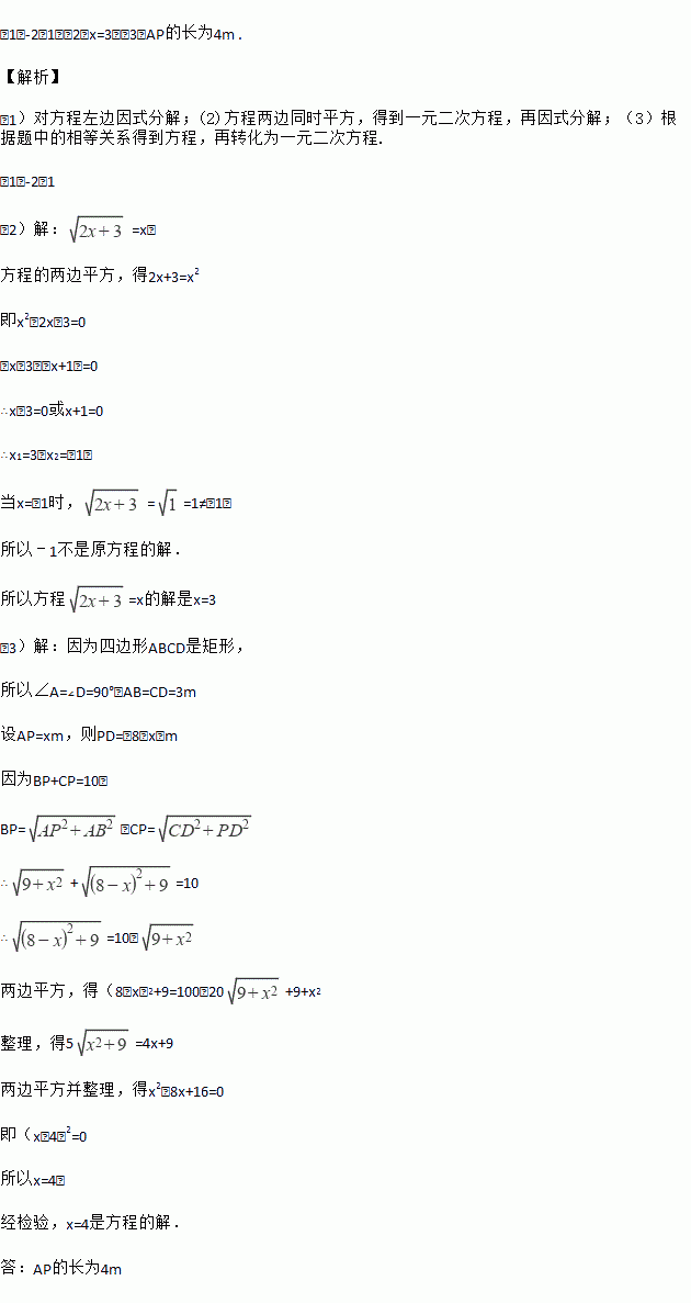 (3)应用:如图,已知矩形草坪ABCD的长AD=8m,宽AB=3m,小华把一根长为10m的绳子的一端固定在点B,沿草坪边沿BA,AD走到点P处,把长绳PB段拉直并固定在点P,然后沿草坪边沿PD、DC走到点C处,把长绳剩下的一段拉直,长绳的另一端恰好落在点C.求AP的长.