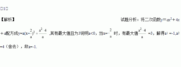若二次函数y=ax2+4x+a的最大值是3,则a=______.