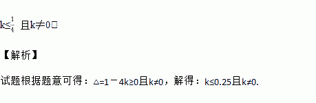 关于的一元二次方程有两个实数根,则k的取值范围是________________。