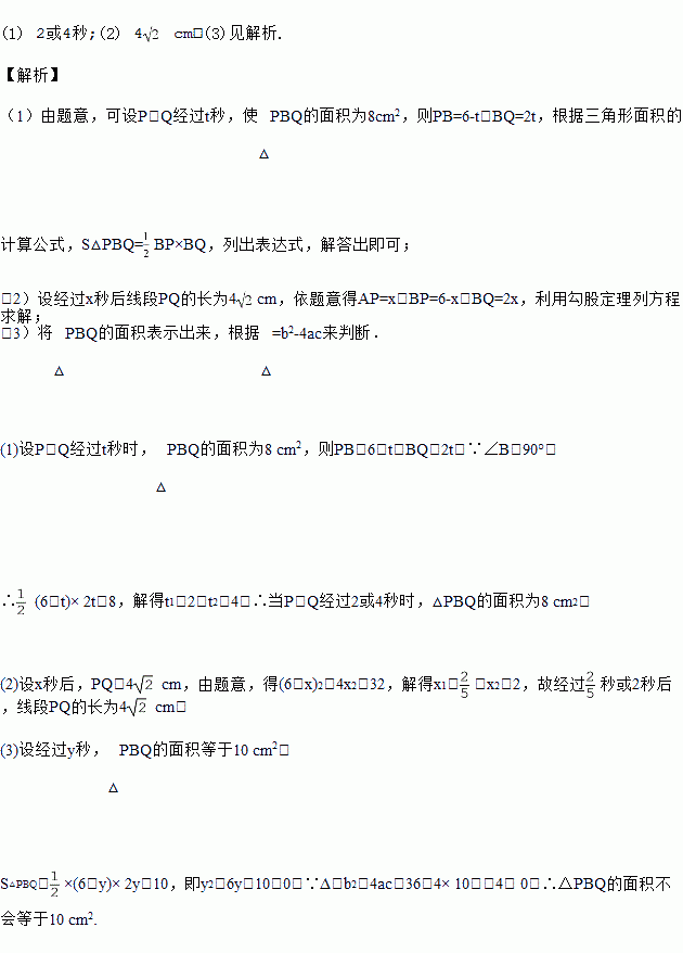 (3)△PBQ的面积能否为10 cm2?若能,求出时间;若不能,请说明理由.