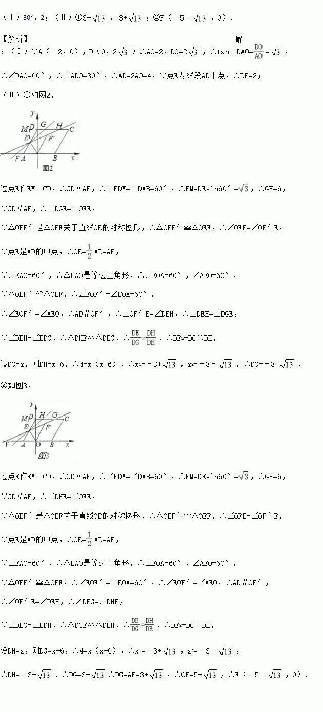 (Ⅰ)如图1,求∠DAO的大小及线段DE的长;