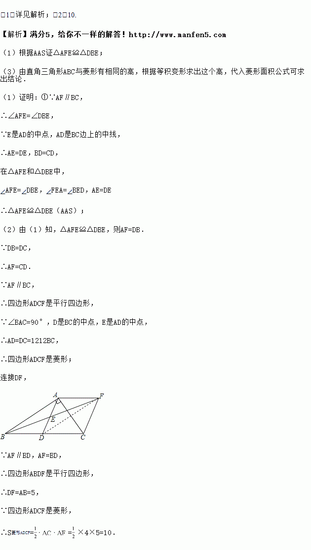(2)若AC=4,AB=5,求菱形ADCF的面积.